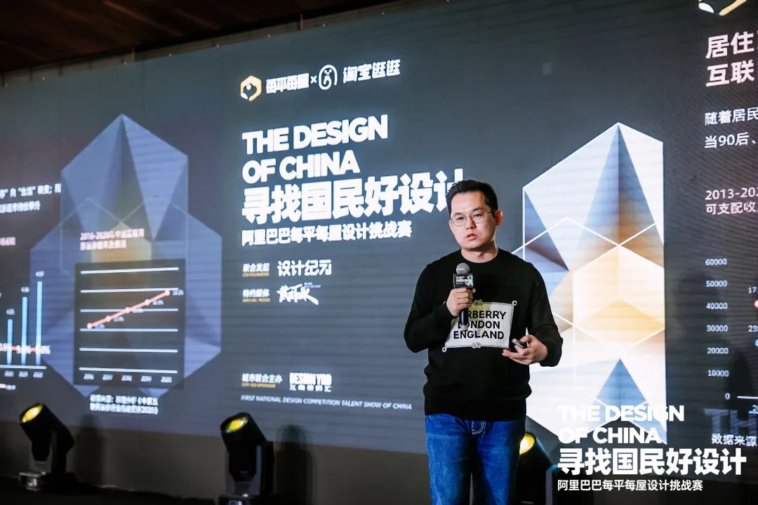 隨后,設計紀元創始人董嘉菲先生正式介紹并發布「尋找國民好設計」——2021阿里巴巴每平每屋設計挑戰賽,通過賽事的不同階段節點為我們揭開其神秘面紗。第一階段為設計師招募期,專家評審團對參賽作品進行評選并角逐出300位設計師入圍復賽;第二階段復賽期,通過互聯網可視化數據綜合評價體系評選出30位設計師進入決賽;第三階段決賽期,征集10位典型需求業主,由業主晉級最終TOP10。