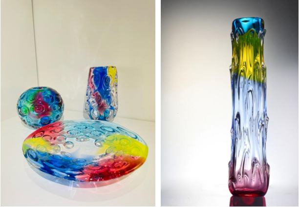 推薦玻璃擺件:炫彩花瓶果盤三件套
