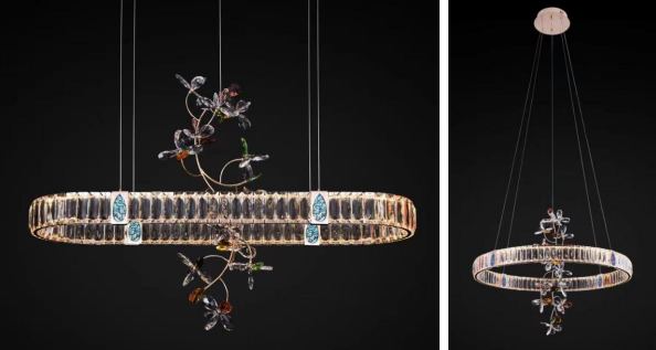 這款吊燈,不銹鋼與水晶的碰撞,營造出空間明亮與溫暖的家居氛圍。內部折射如同鉆石一般的水晶花,錯落有致,為寂寂冬日增添一抹亮麗與閃耀。