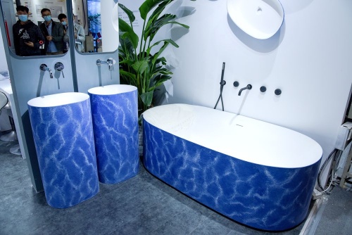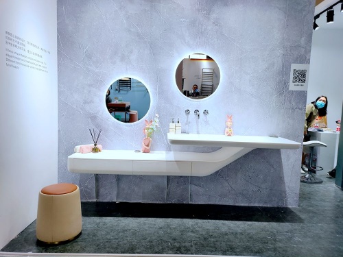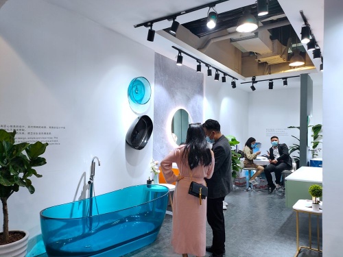 創品高衛浴這次主題是以彩色衛浴空間整體衛浴為主的產品系列,原材料是精選優質的綺美石與與原礦石為原料,色彩多樣的浴室柜、浴缸、立柱盆、臺上盆等產品,吸引大量觀眾駐足觀看,紛紛拿下手機拍下美照,刷爆朋友圈。