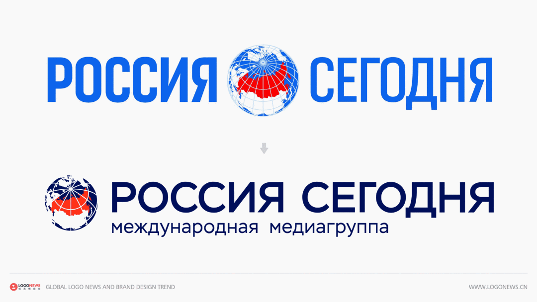 將地球圖標從原來的兩個詞中間移到左側后,「Россия сегодн(今日俄羅斯)」這個名字在視覺上也就變得不可分割。