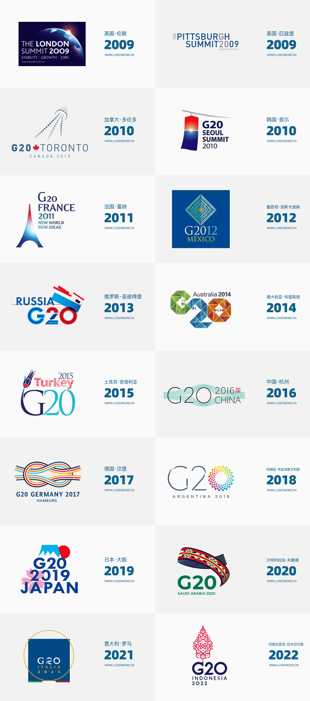 歷屆G20峰會會徽: